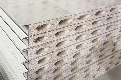 2、金屬復(fù)合板的芯材常為巖棉,起到防火、隔熱的作用。